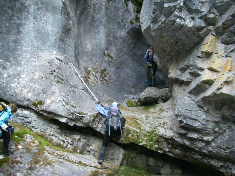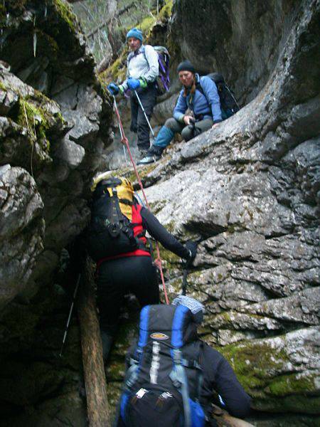someone was just coming up the canyon. Turns out that it was Peter Irwin, a former Hostel Outdoor Group member, who has decided with others I believe, to upgrade and improve the chains and old ropes in the old obstacle course as well as install additional chains, ropes and ladders on challenging sections further up the canyon. He remembered me but I had to check who he was remembering his name after he stated it.(Peter was active with the HOGs when I was less active with the group). Anyway the work they have done helped to make our trip extremely enjoyable as we progressed up the canyon. Thanks Peter and group for all the excellent work you have done!