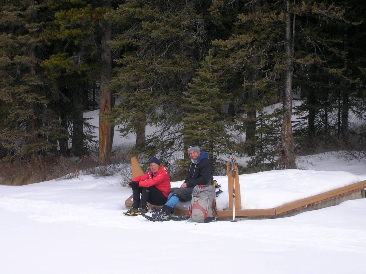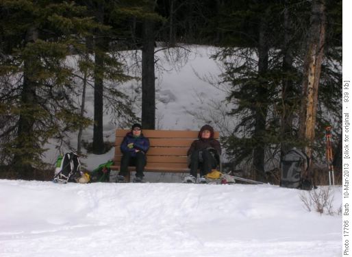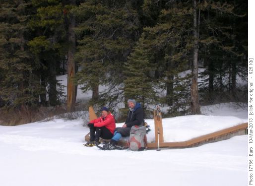 Despite the great weather and snow conditions, we saw very few people – a couple of small groups of skiers on the trackset trails in the area and a couple of family groups and a couple of smaller groups of snowshoers in the Marl Lake area, including a pair of Ramblers out on their own short trip.