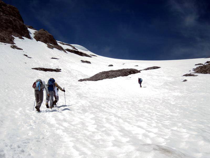 The slopes up Mt Turbulent were still snow covered to the south and provided an easy route to the top.