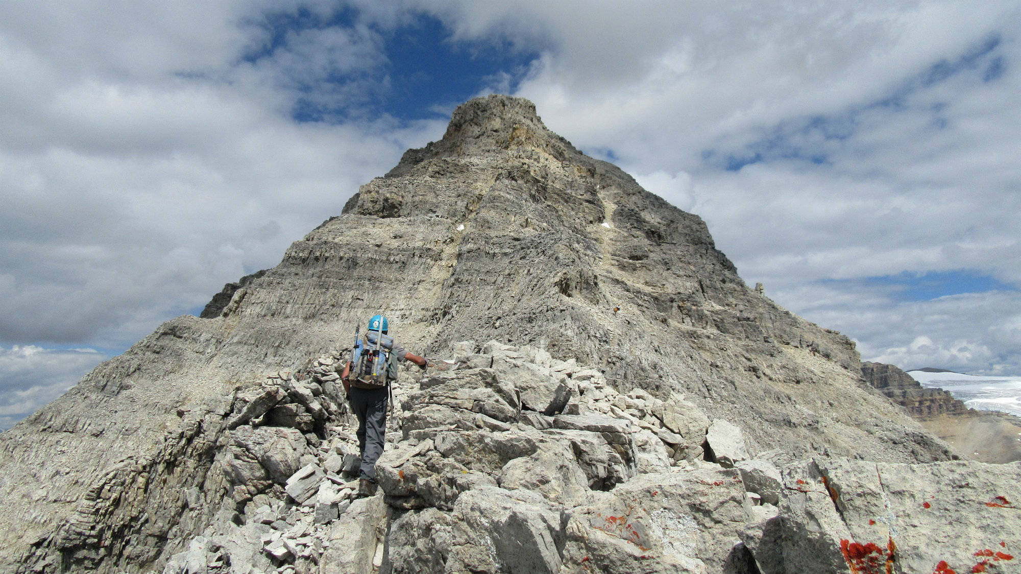 Near the upper section of the summit block we traversed left over a series of ledges to a gully, which led to the small summit ice cap.