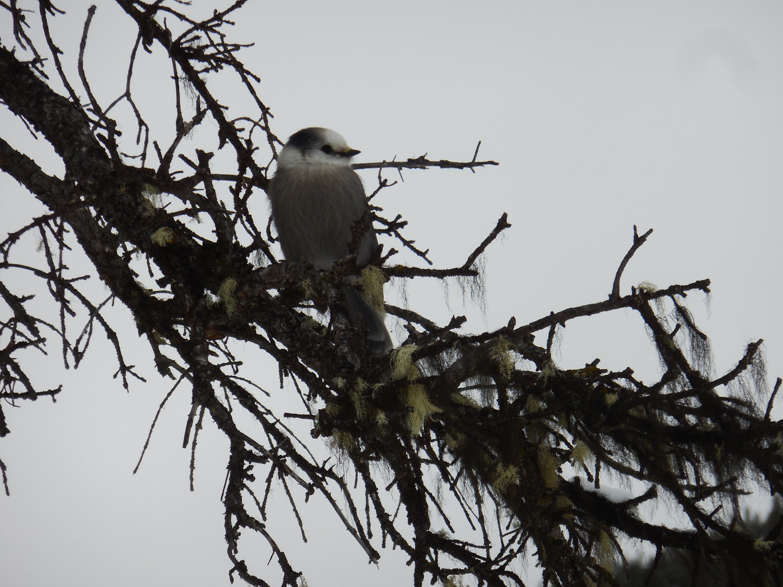 We saw a large female moose in a meadow off the 1A on the drive in, a Whiskeyjack at lunch and what appeared to be 2 sets of wolf tracks along the road on our walk back from the Moose Meadows to Johnston’s Canyon parking lot.