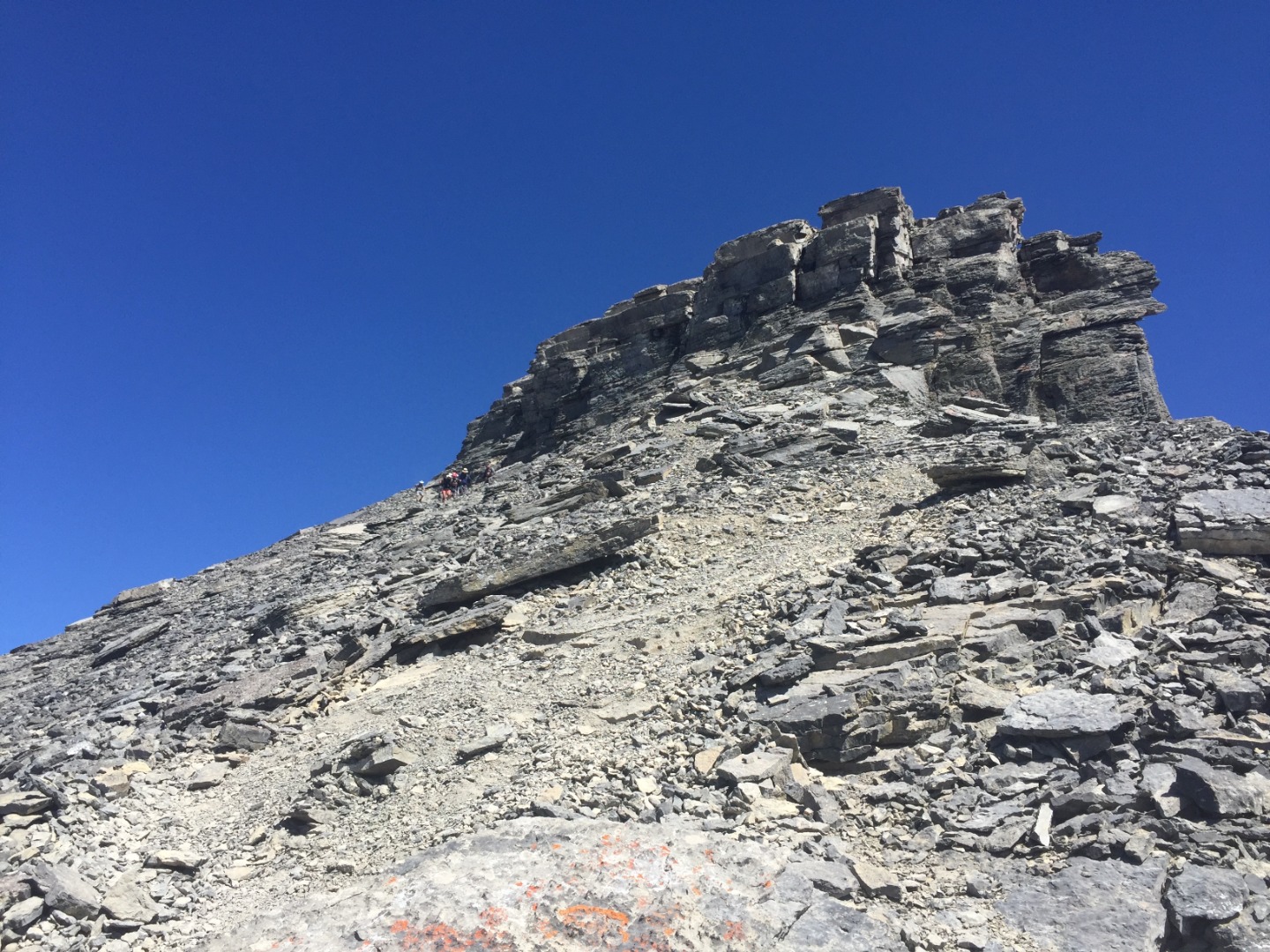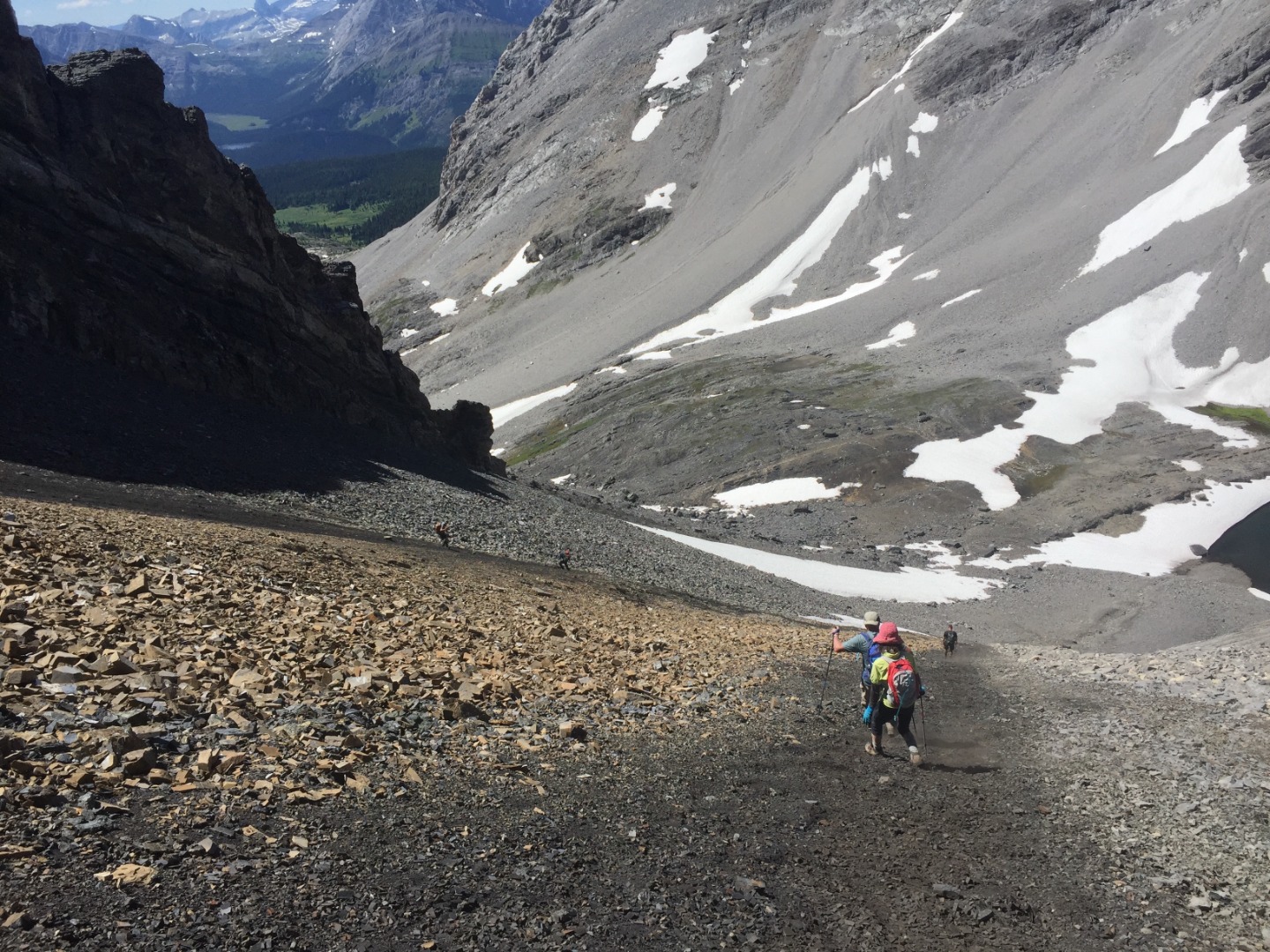 We were soon back at the col, contemplating the best scree descent. One group took the left side, while another took the right.