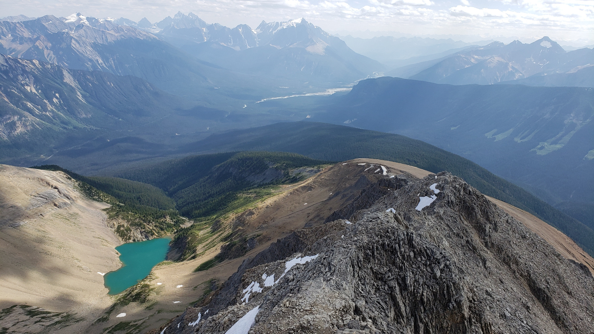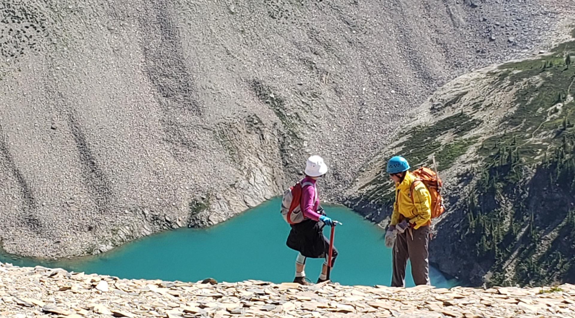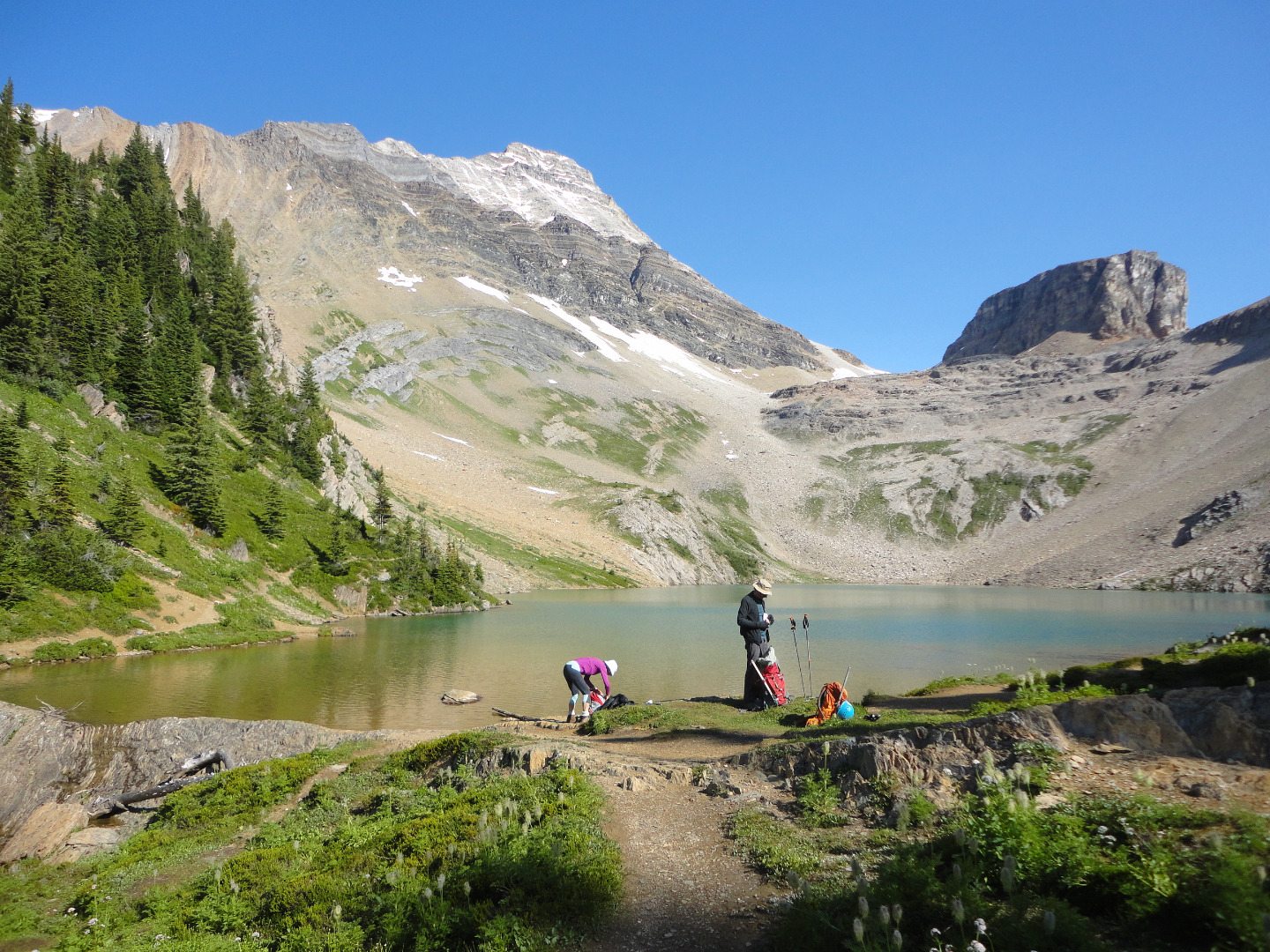 We met at the Emerald Lake TH near Field BC at 8.30am and set off along the good park trail to Hamilton Lake. Despite ominous clouds in Calgary, it was clear but cool (+8c) in the nearly empty parking lot. Two hours later we had a break at Hamilton Lake and studied our approach to the ridge for Mt. Carnarvon.