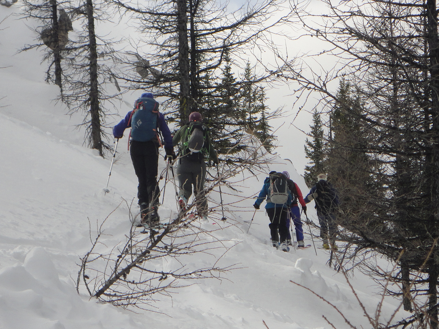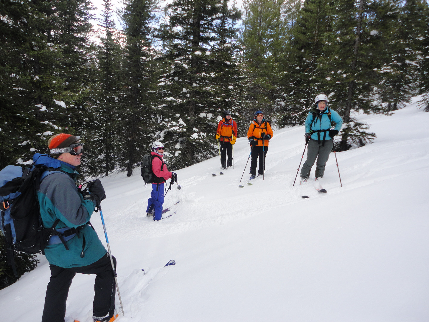 We went up for another short run staying below the rock bands and had enough fun that we went up and further west for our last and best run slightly more , less steep and fewer old tracks.