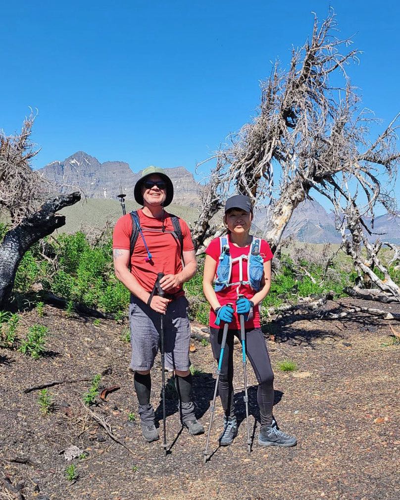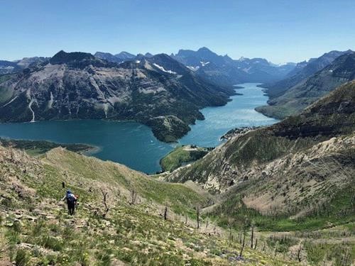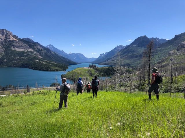We met at the Park offices at the bottom of the Tick Ridge and SE slopes routes, left a car there, and drove to the south end of the Crandell Lake trail on the Akamina Parkway (the road to Cameron Lake). We set out a few minutes to 9:00. At the same time, Bill was leading a group going up and back down the western route, but starting from the north end of the Crandell Lake trail on the Red Rock Parkway. Note that ours was shorter and Bill feels that it is the better route since his was now a walk through the 2017 burn.