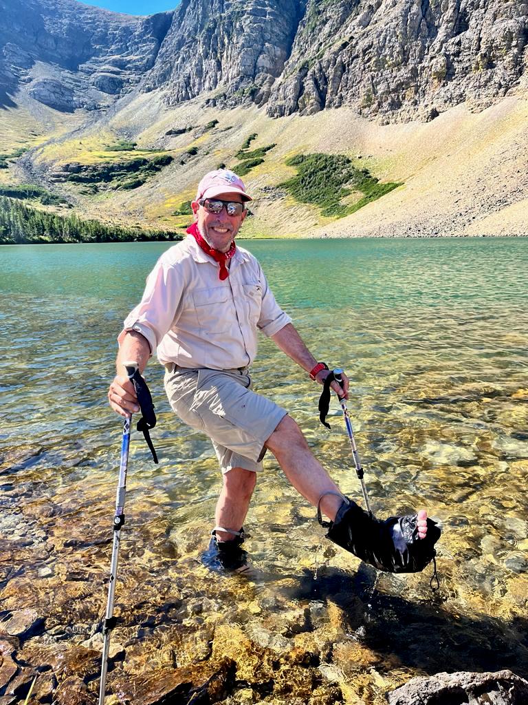 Then, as the temperature was rising, four of us decided to swim in the lake while waiting for two Ramblers coming back from the ridge. We walked around the lake to the opposite side to swim. We spent about two hours relaxing at the third lake before we decided to come back. We were back at the parking lot shortly after 3:00 pm. We traveled about 13.5 km with the total elevation of about 717 m.