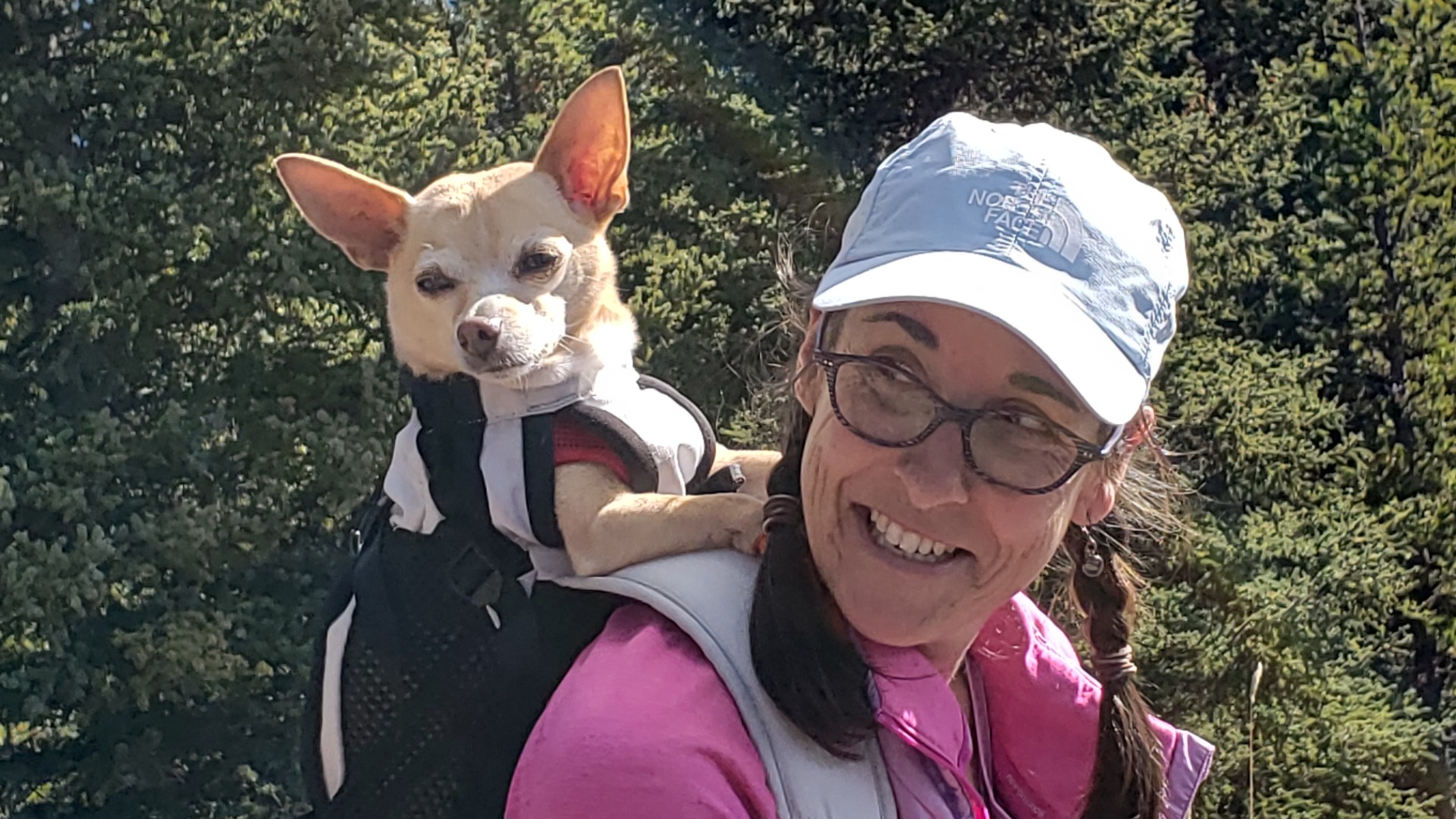 Our mascot for the day, Mia, the Chihuahua, rode down in a very custom and cozy dog pack on the back of owner Marie-Josee, enjoying her free trial introduction to the Ramblers. We hope to see more of both on future hikes!