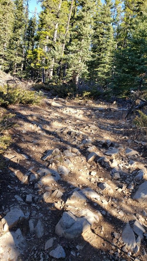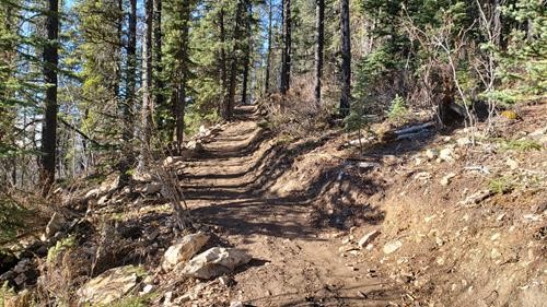 Some sections appear to be the old trail, with rough, rocky tread and/or rooty sections.