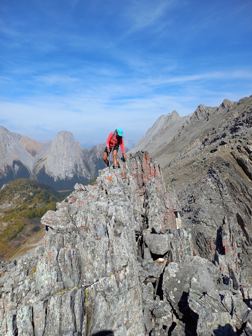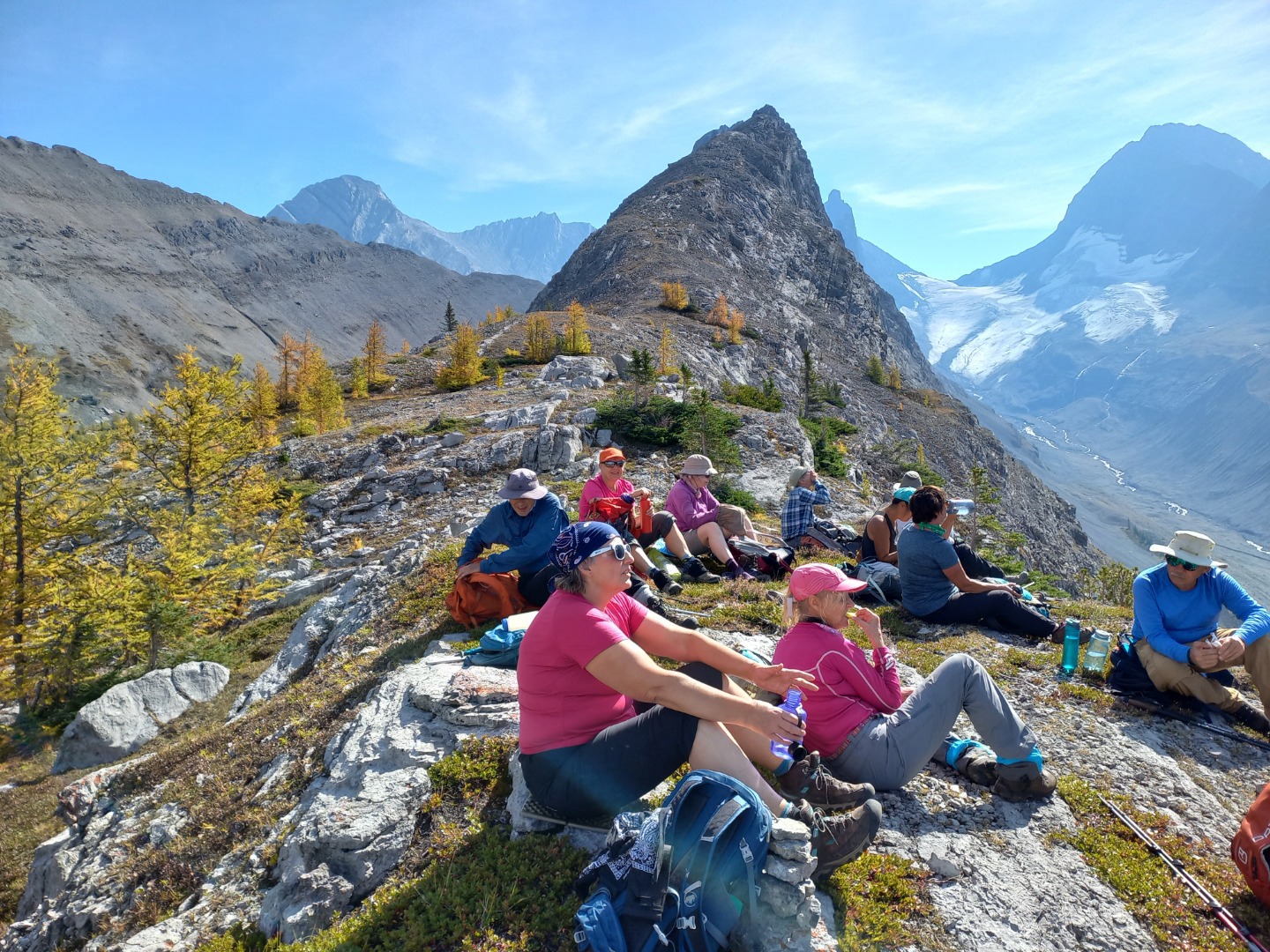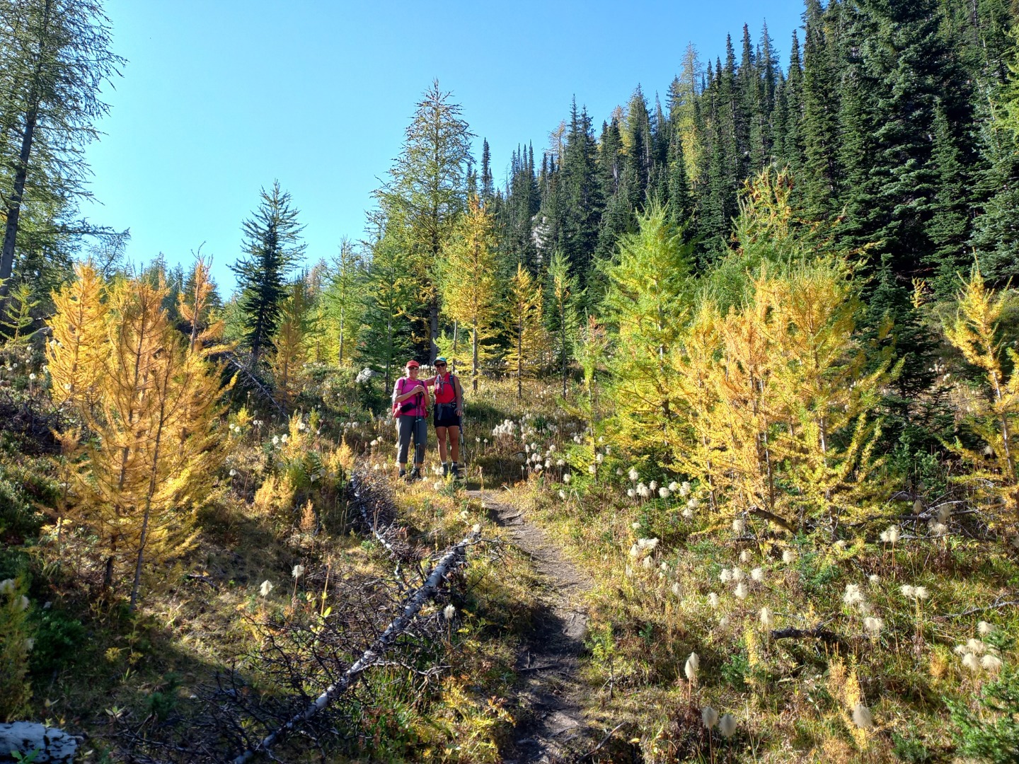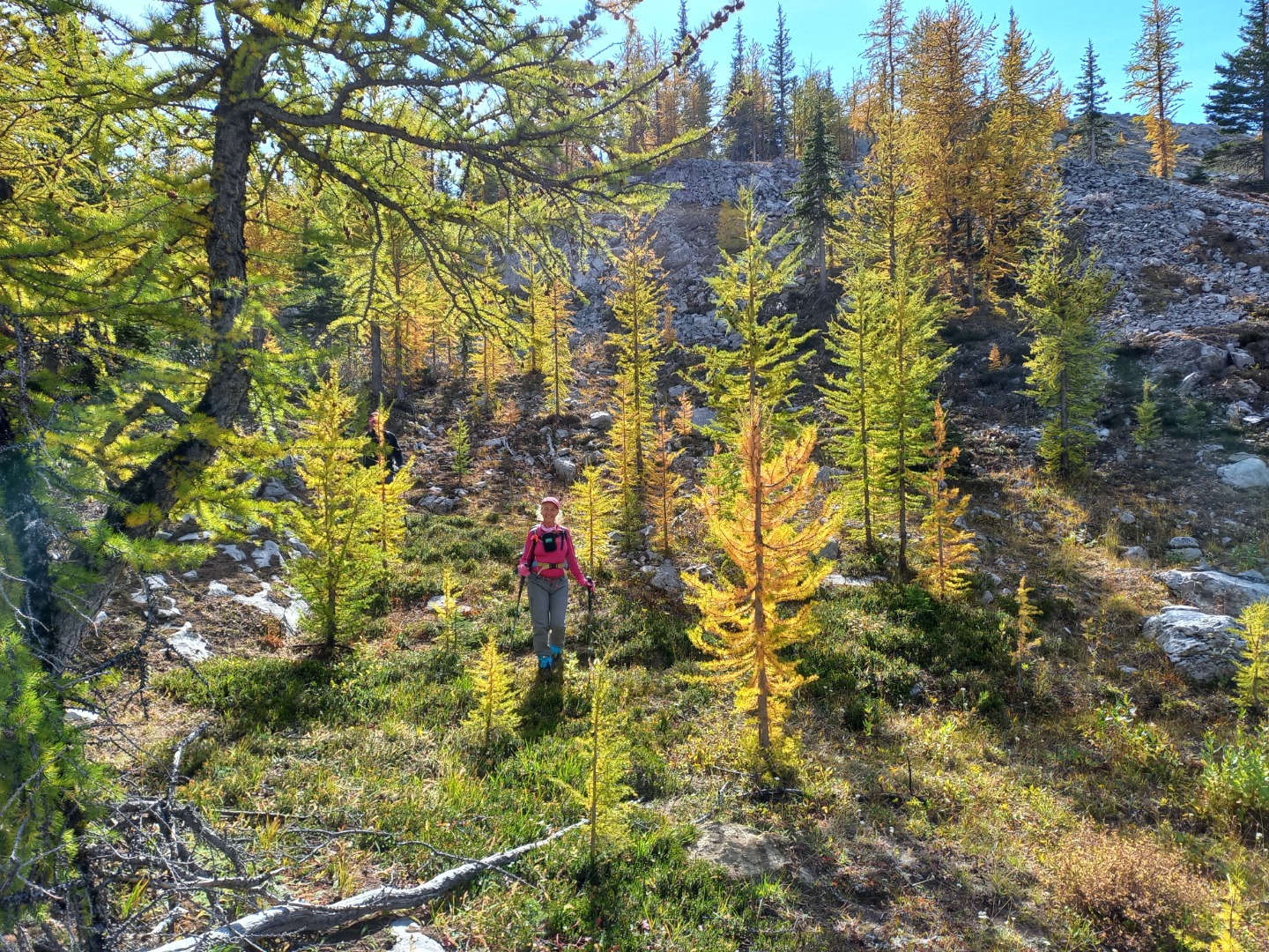 We came to see the larches and weren't disappointed. Not yet at their peak but yellow enough to satisfy our esthetic needs. Arriving at the col before lunch time we decided to hike up the south ridge of mount Burstall ,some to the second bump ,some to the third. Of course the higher you go the better the views. Afterwards we did the customary extension to the nice larch forest and the knoll with decent views of the Robertson glacier. Back at the cars at 4pm. Traffic specially on hwy. 40 was heavy and slow moving .