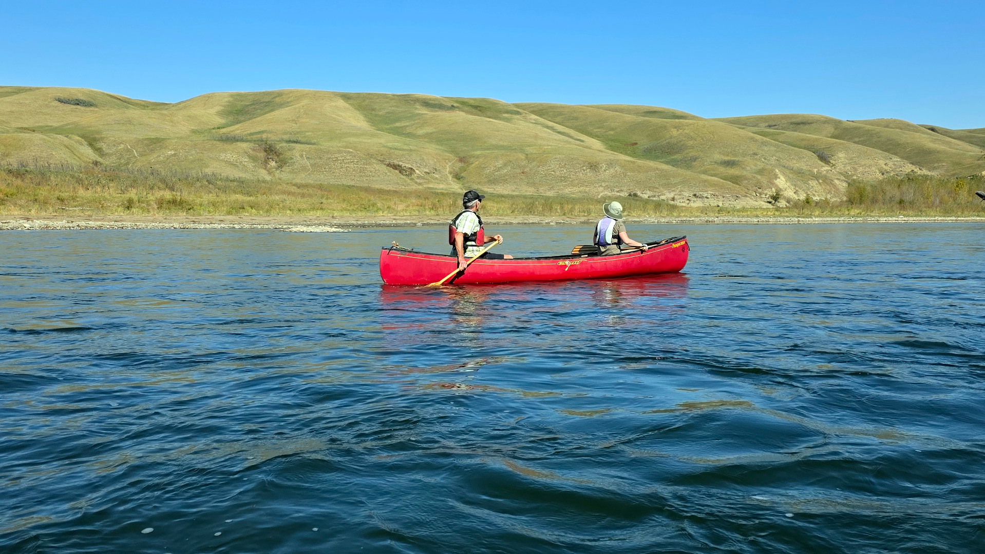 An early morning mist hung over the river at Policeman’s Flats as we unloaded our boats in preparation for the paddle to McKinnons Flats. After completing a vehicle shuttle to place some vehicles at the takeout, we headed headed off down the river at about 10:30 am. The water flow rate was average for the time of year at 71 m3/sec, but the Bow in this section is quite fast, giving us an average speed on the water of 8.5 km/hr. The water was crystal clear with the only hazard was the occasional rock. We passed many fishermen along the shore and drifting down in boats, although we didn’t actually see them catch anything. We saw lots of bird life along this section, including bald eagles, ospreys, red tailed hawks, king fishers, pileated woodpeckers, herons to name just a few. The weather was truly amazing for mid-September with blue skies and a temperature of around 30C. We reached McKinnons Flats at about 2:30 pm having paddled a total distance of 23.5 km. Thanks to Joanne, Gordon, Jenny, Steve and guest Mark for coming out to join me. c/s John,