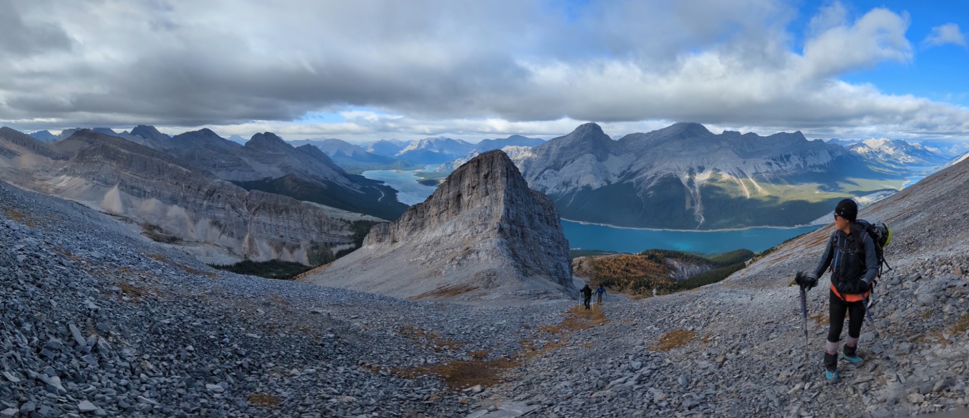 Despite the lack of summit views, the group enjoyed great views of Spray Lakes and larch trees. We reached the cars again by 3:30p.m.