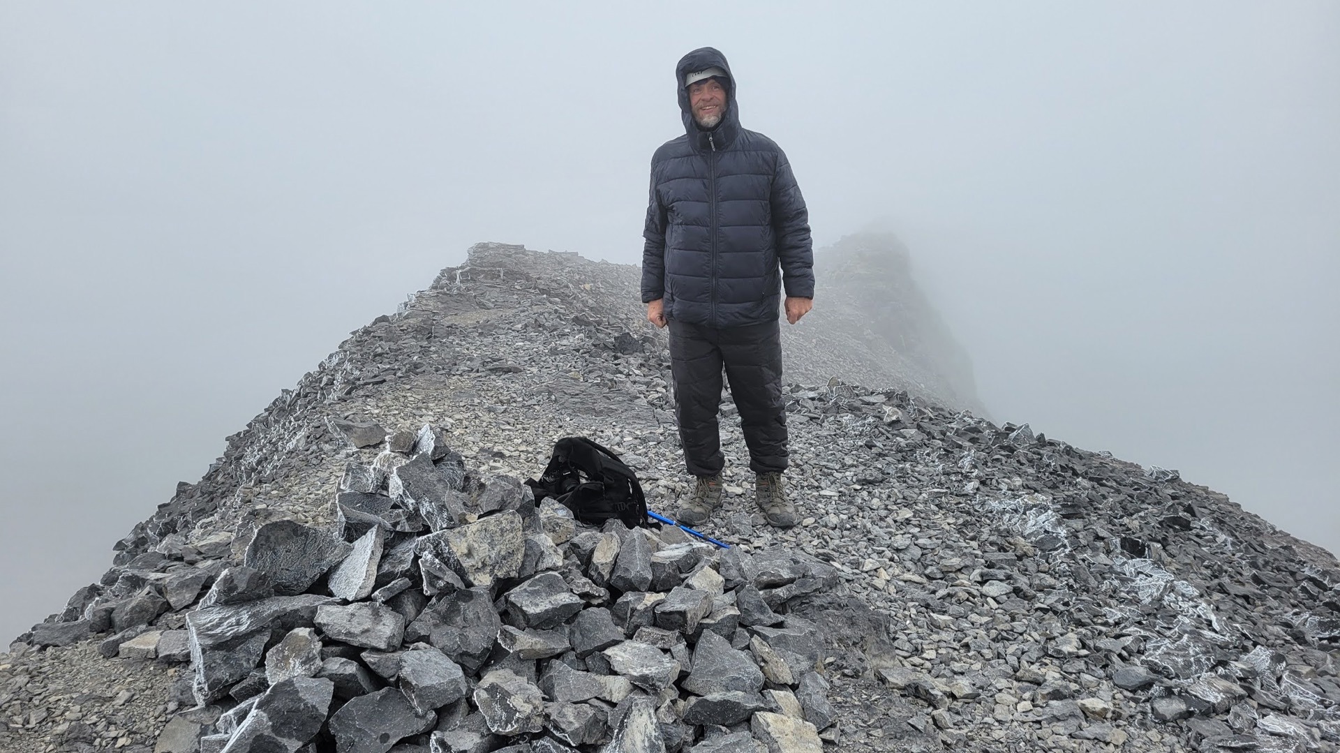 The route gains 1,415 m in approximately 11 km. Everyone maintained a brisk pace to stay warm. Fortunately, the group consisted of strong and experienced hikers.