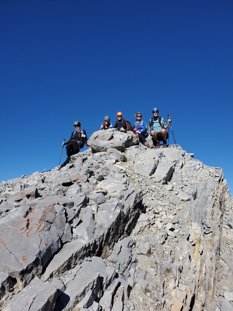 This short, scenic scramble was new to three of us and what a perfect day to discover it! Clear skies, warm sunshine and a happy and confident group to enjoy it with. Thanks to Maryse, Alda and Sim for capturing it on film.
