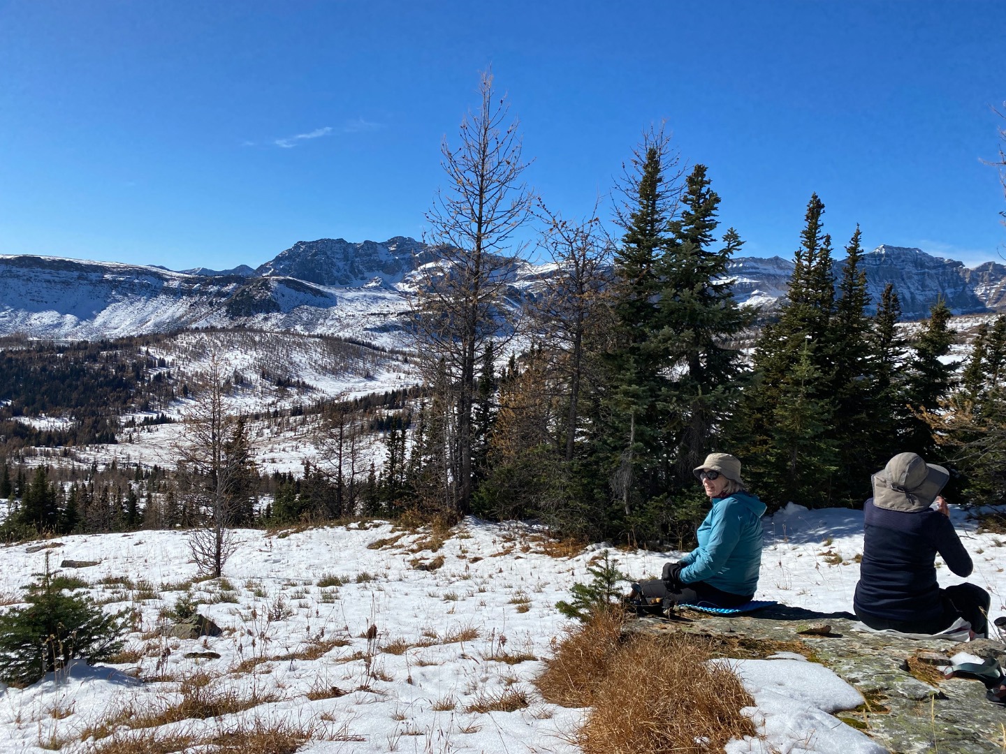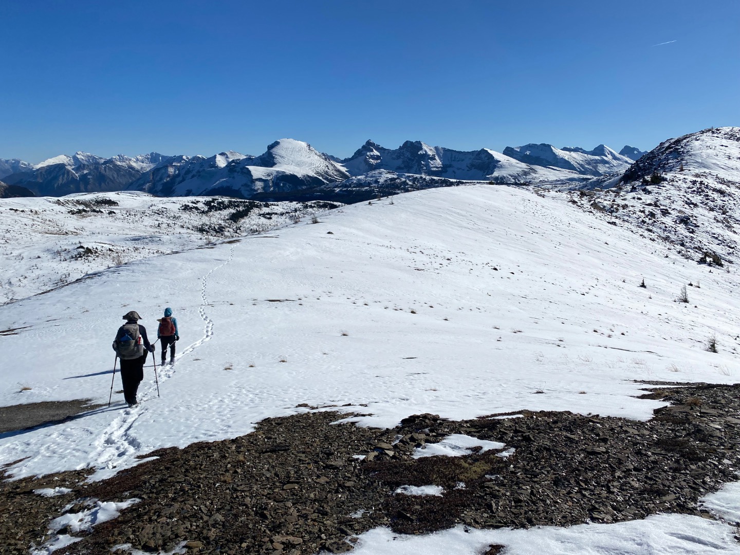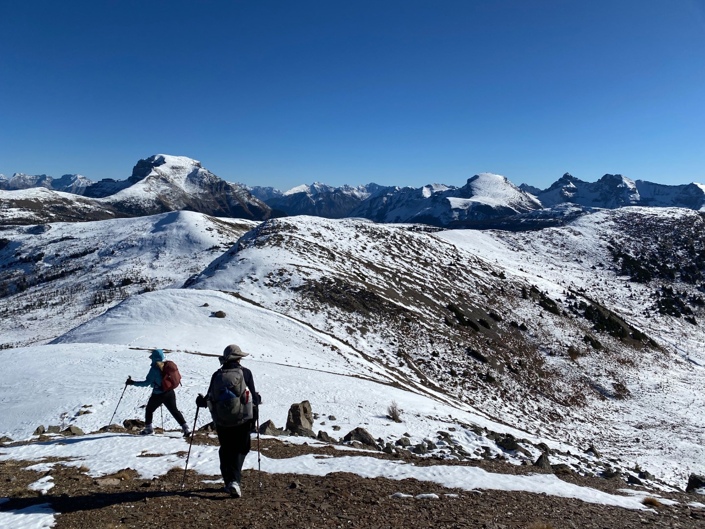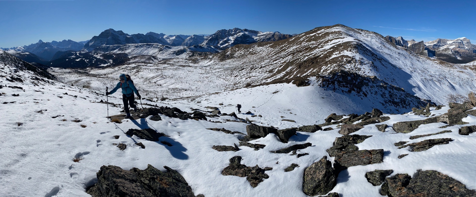 Everything pointed to today being the perfect opportunity to do this beautiful ridge walk: the forecast was for sunshine and a not-too-cold temperature, the snow level was still manageable, and it was the first day after the seasonal closure had been lifted. And indeed it was a perfect day! Even the long walk up (and down) the Healy Pass trail was made beautiful by the fresh snow on the trees. We all immensely enjoyed what might have been the last long ridge walk of the season. 21 km/960m in 7 hours. Sorry that all of the photos look more or less the same, but that just proves how staggeringly beautiful the entire landscape was.