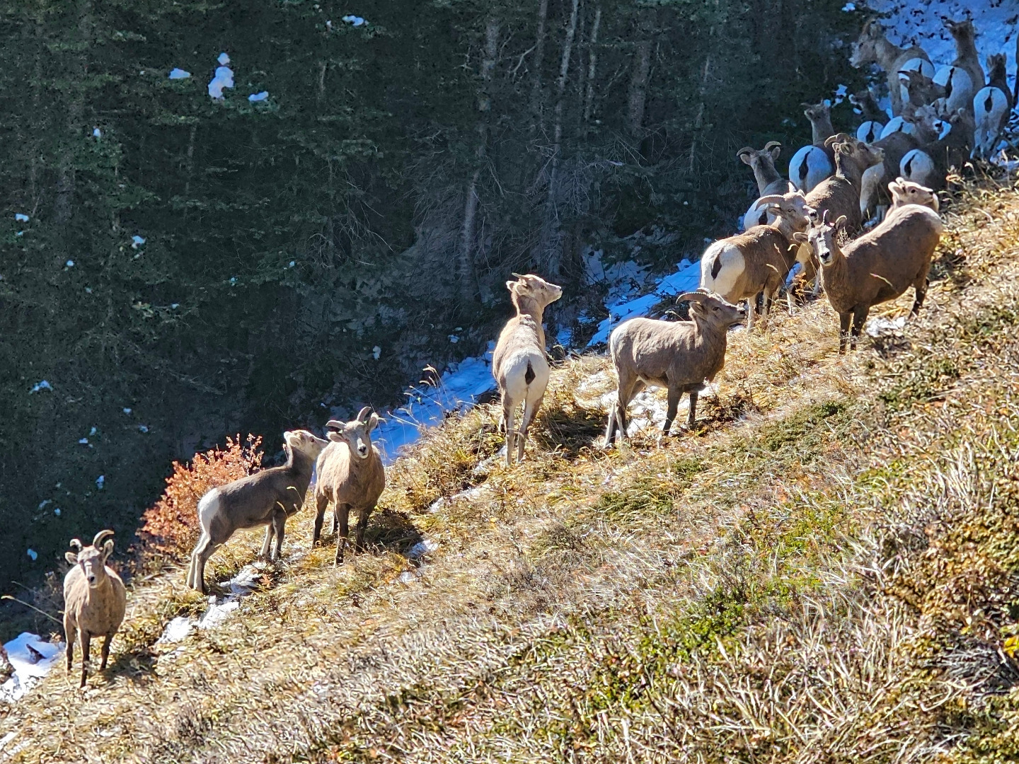By general consensus, we carried along the ridge some distance before swinging back into the valley bottom with much side-hilling. In particular, I found this tiring but the group were able to relax and enjoy the warm sunny weather. Apparently this longer route is popular, but was not in the original plan, which was a more direct descent that I thought I remembered from a previous trip. Next time I'll do my homework better. A highlight was encountering a flock of sheep. We arrived back at the cars about 4.20pm making for nearly an 8 hour day for 14.3km and 870m elevation gain on my GPS. Thanks to all for stopping frequently and especially to Teresa and Susan for photos.
