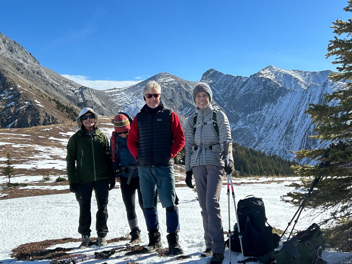 Participants: Gary, Susan, Janice, Nardi, Lenard, Jo, Heather, Jenny With the drive out in to Kananaskis Country we had the chance to witness a big herd of elk along the highway, a nice view. Upon the walk in and starting our climb thru the steepness of the trail the sun came over the mountain bringing the heat wave.