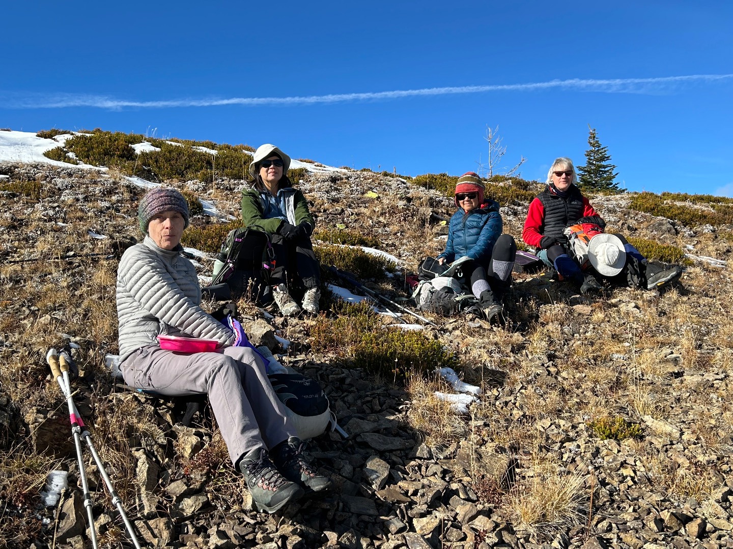 Once reaching the Knob of Old Baldy we turned into a strong cold breeze, a few nice photos, taking in the views, then dropping back a little for the perfect lunch spot. It always reinforces in me how strength and drive comes from the heart, how one can feel contentment and happiness in our lives with what we have. For what we built is just as gratifying, giving pleasure, satisfaction as the so called "1 percenter's". A most beautiful day was enjoyed. The thank all those that joined me to make it happen..... Scribe, Lenard.