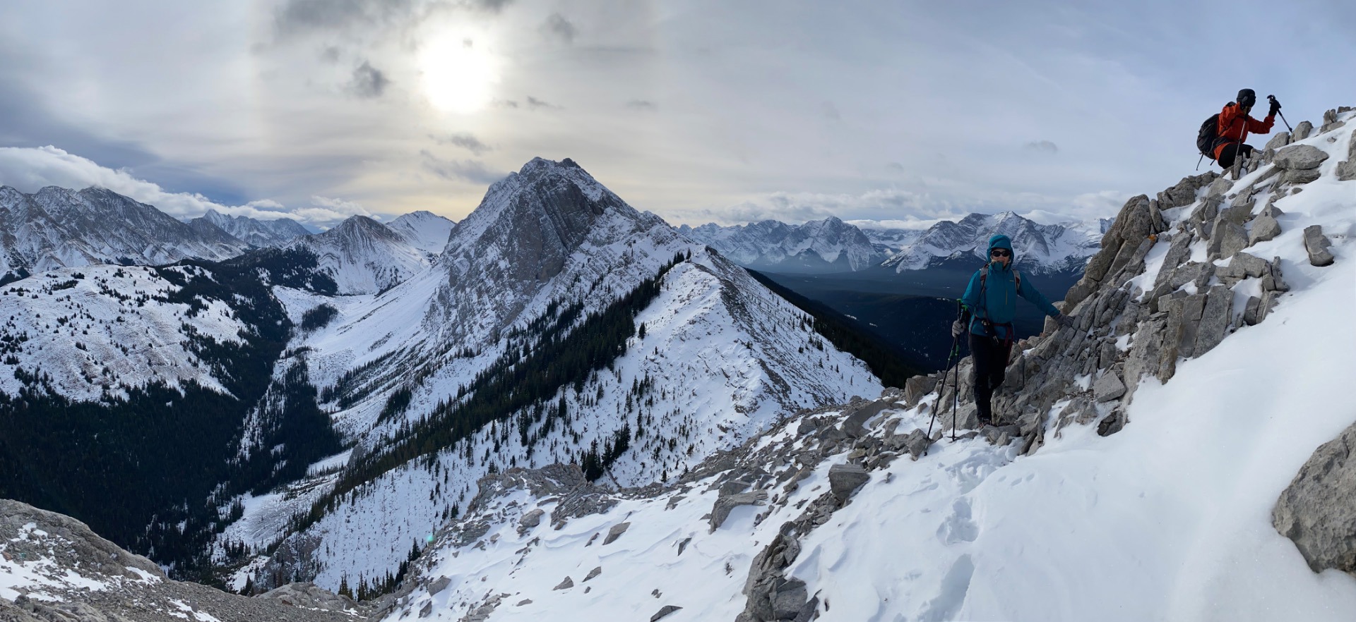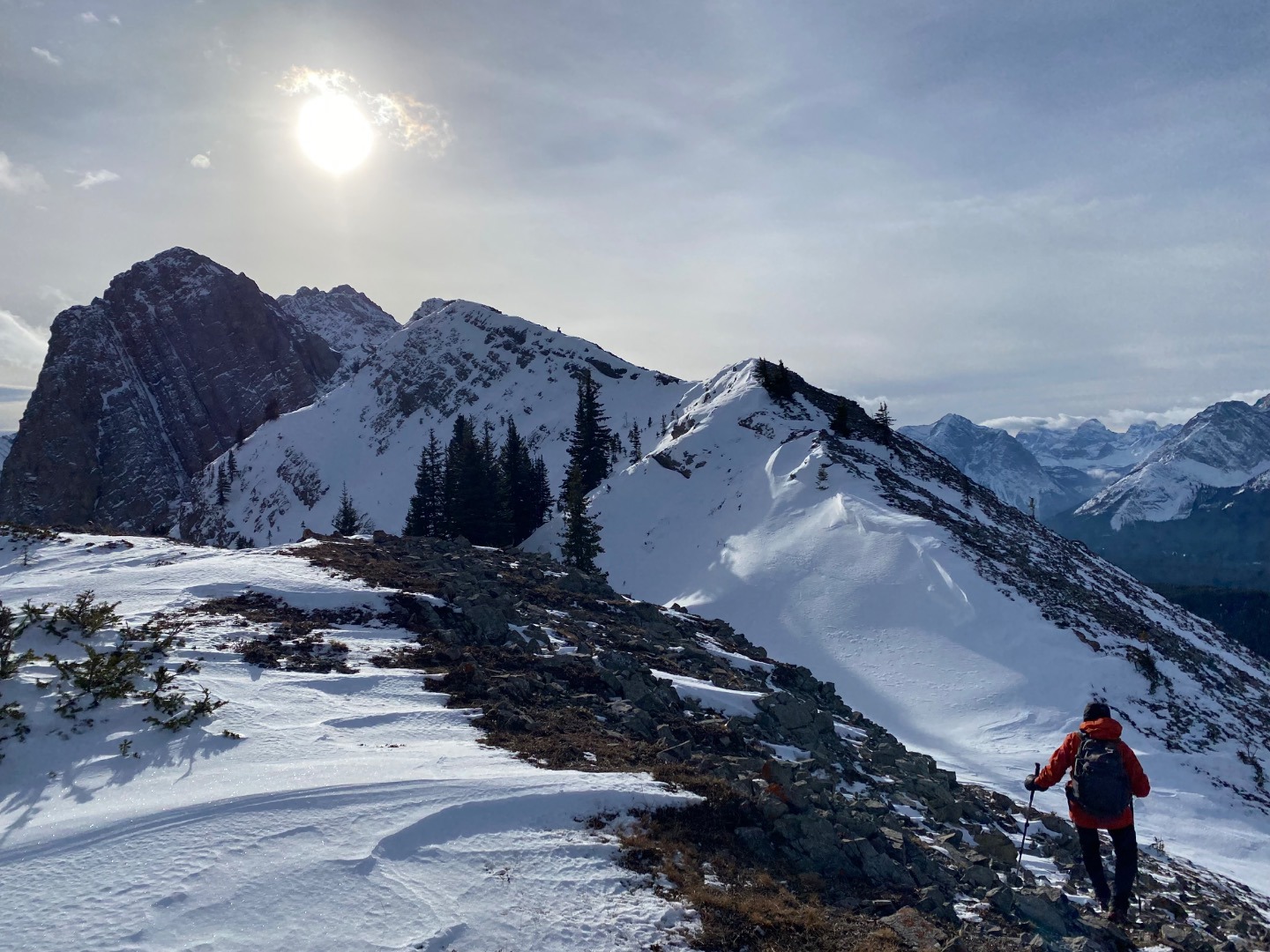 Another rewarding shoulder season hike, snuck in before the winter gates close and before the skiers take over the Back Door to Pocaterra. The wind was relatively light for a change, so we could enjoy not only Mt Roberta but also the ridge extending to Mt Pocaterra. Afterwards we retreated to a sunny protected spot in the trees for lunch before the fast descent. 9 km/850m in 4.5 hours.