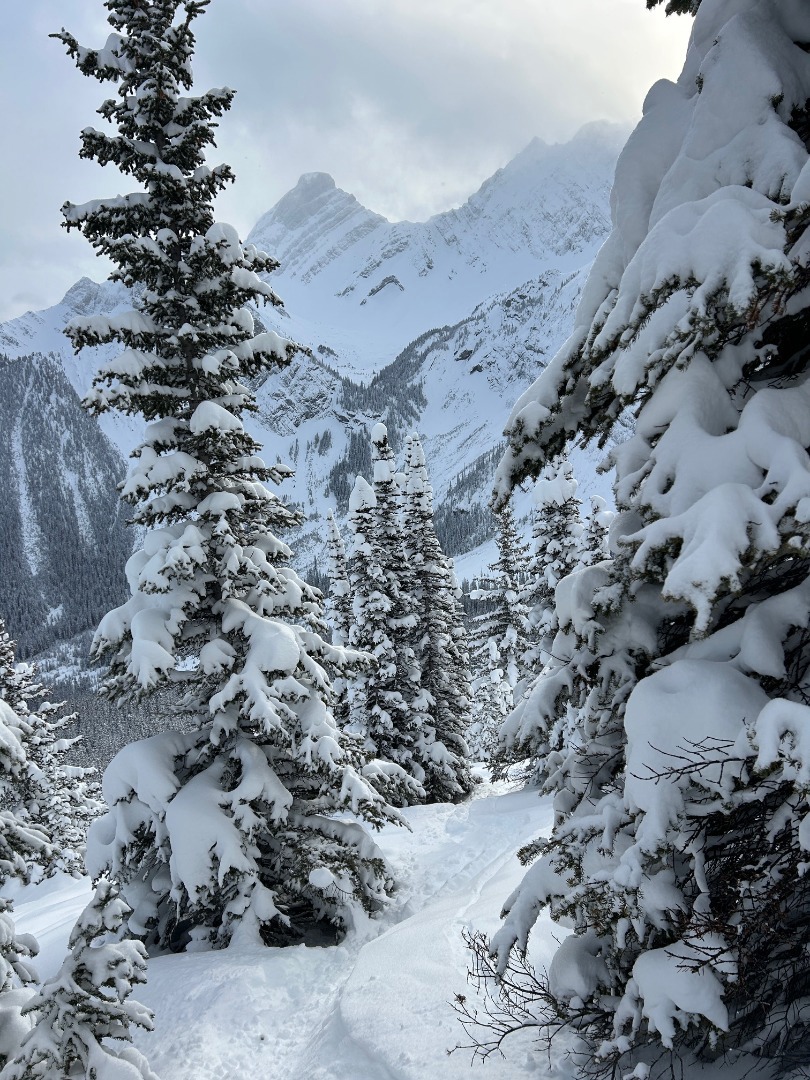 Cancel? Nope, really wanted to ski. Move to another location, probably a good idea, but where? The day called for trees and limited overhead hazard, and ideally a few different aspects to choose from. And also some thought given to potential road conditions with more snow and high winds.