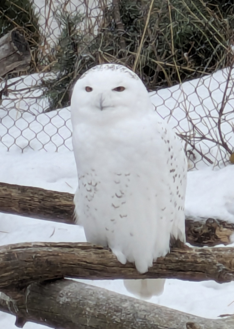 A cold fog and the odd light snow made for a chilly day, but there are always tropical indoor enclosures to go into. Most of the favourites were on view, when the male Amur tiger reared up on its hind legs with a growl it made you happy for the sturdy fence. The lions were not as active, happy to be snoozing on their heated rocks. GPS indicated distance of 6.1 km, egain 118 metres. A few of the feathered residents appended.
