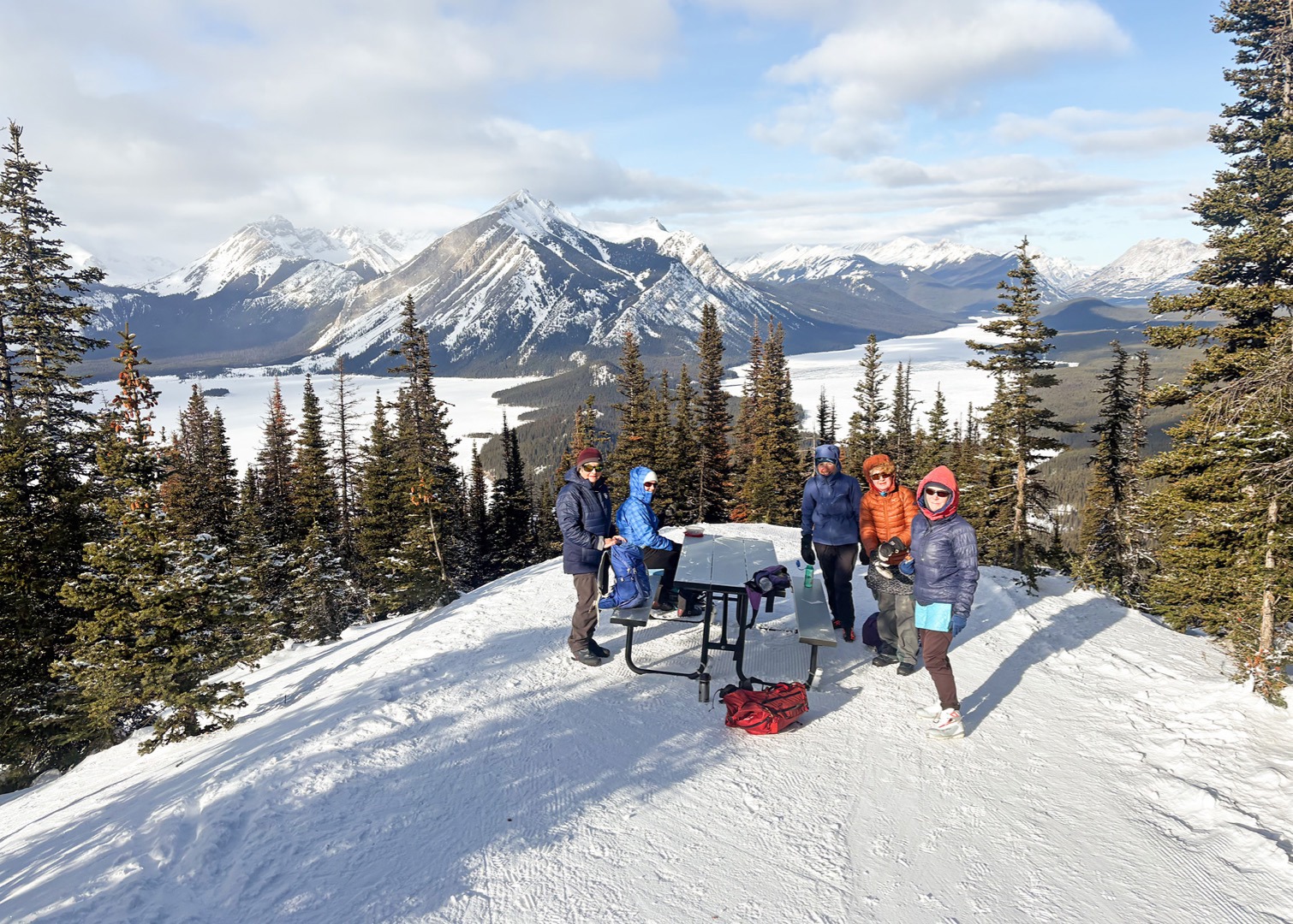 It was pretty much a perfect blue sky and blue wax day to ski Blueberry, with excellent, recently trackset conditions- firm and fast- but not too fast! We opted for Fox Creek on the return, rather than back over the powerline hump, and enjoyed better than usual tracks there too, albeit with the occasional ski-grabbing cone. And as always on such a fine day, we stopped to several times to take advantage of the January sun. Thanks everyone!