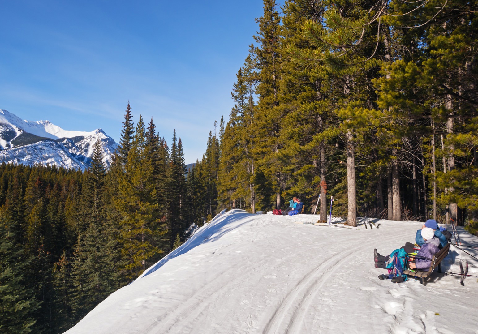 The day had been posted as Tyrwhitt Loop, in anticipation of clear sky and fresh grooming on Tyrwhitt, Hydroline and Elk Pass, which seemed to be the regular schedule. Instead, the Elk Pass cloud was looming under a grey sky, and it was the "middle" trails that got done overnight. So, after a group discussion we decided to "follow the grooming" from the visitor centre to Boulton and back for 15 km of fast and fun skiing. This worked out very well, with perfect tracks, no ice, and only a little debris. And, as it turned out, the sun came out soon enough!